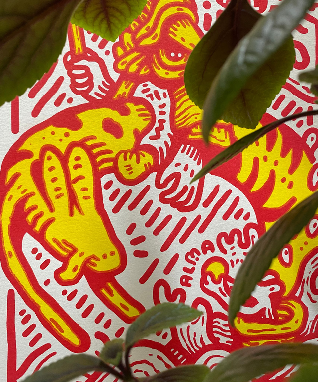 A two colour risography illustrating the taoist concept of pacience. Don't worry, you'll get there, there's no need to rush, one step at a time.